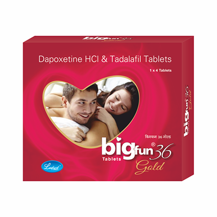 Bigfun Gold Tablet is a combination of two medicines : Tadalafil and Dapoxetine, which treat premature ejaculation. Tadalafil is a phosphodiesterase type 5 (PDE 5) inhibitor which works by increasing blood flow to the penis during sexual stimulation and enables its erection following sexual stimulation. Dapoxetine is a selective serotonin reuptake inhibitor (SSRI) which increases the level of serotonin in nerves to improve control over ejaculation and increase the time taken to ejaculate.